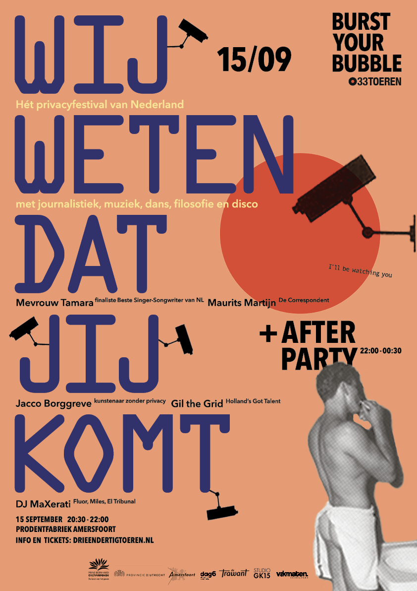een totaalontwerp van concept, styling, decorstukken en pr van het festival ‘burst your bubble’. een festival met journalistiek, dans, muziek, kunst, livehacking, filosofie en aansluitend een privacy-overstijgende afterparty.