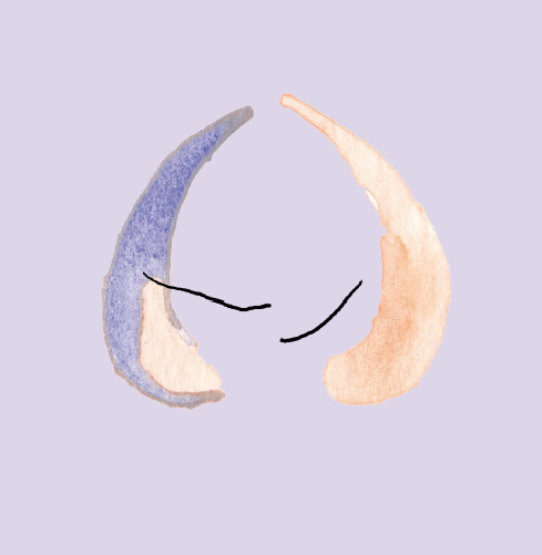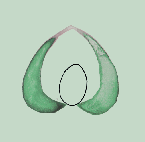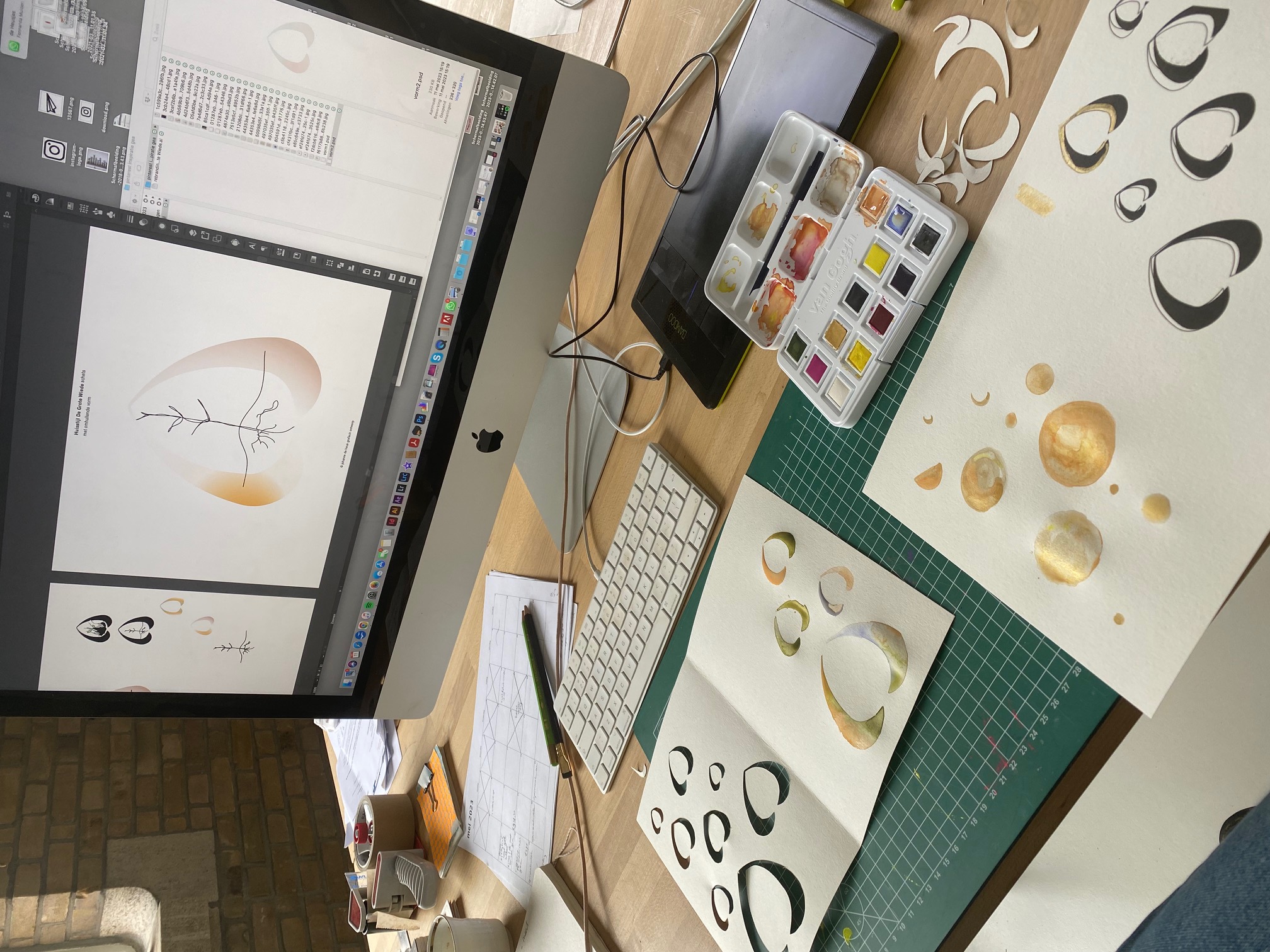 ik ging de vorm snijden uit papier en gebruikte het als mal om de vorm in aquarel te krijgen met verschillende kleurverlopen. zo kreeg elke afdeling van de boerderij zijn eigen kleur en vorm.